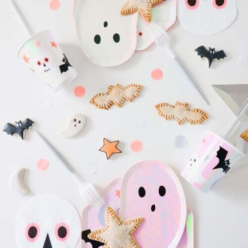 Cardápio temático com múmias, aranhas e fantasminhas
