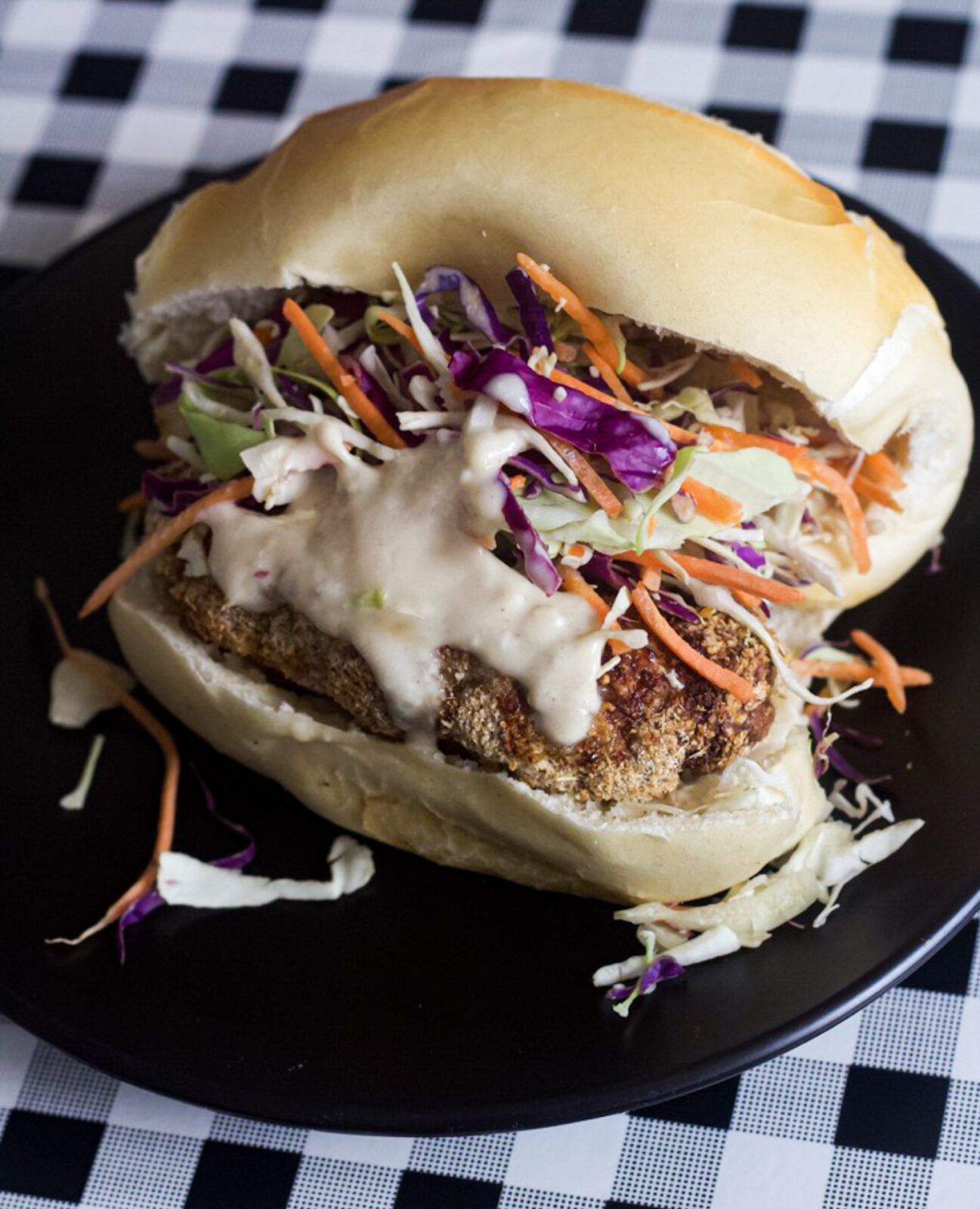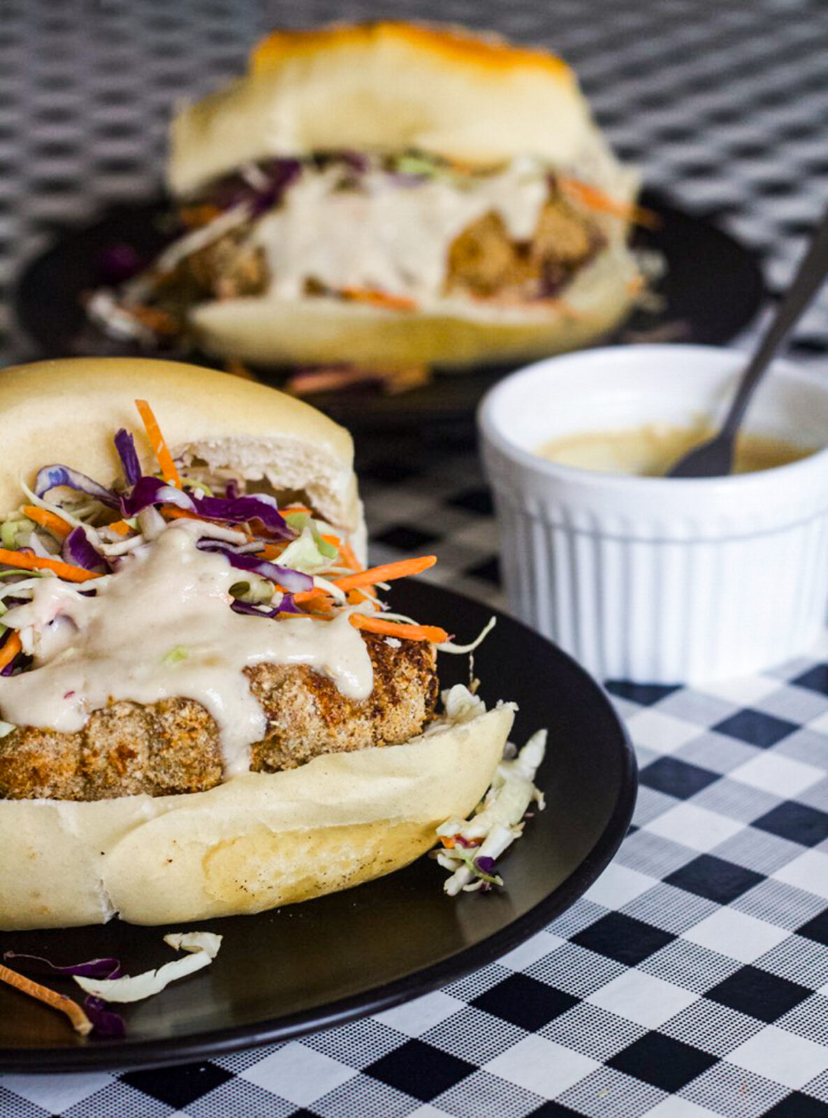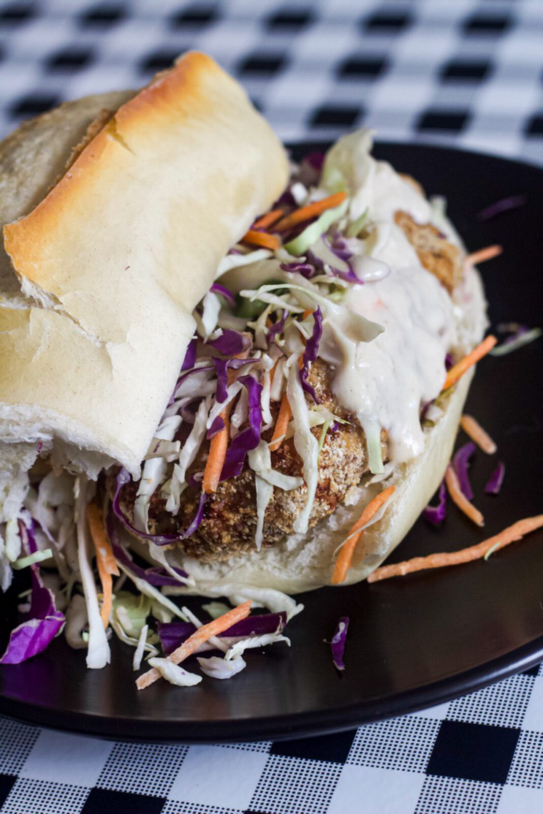 Sanduíche de porco crocante com molho de iogurte e mel